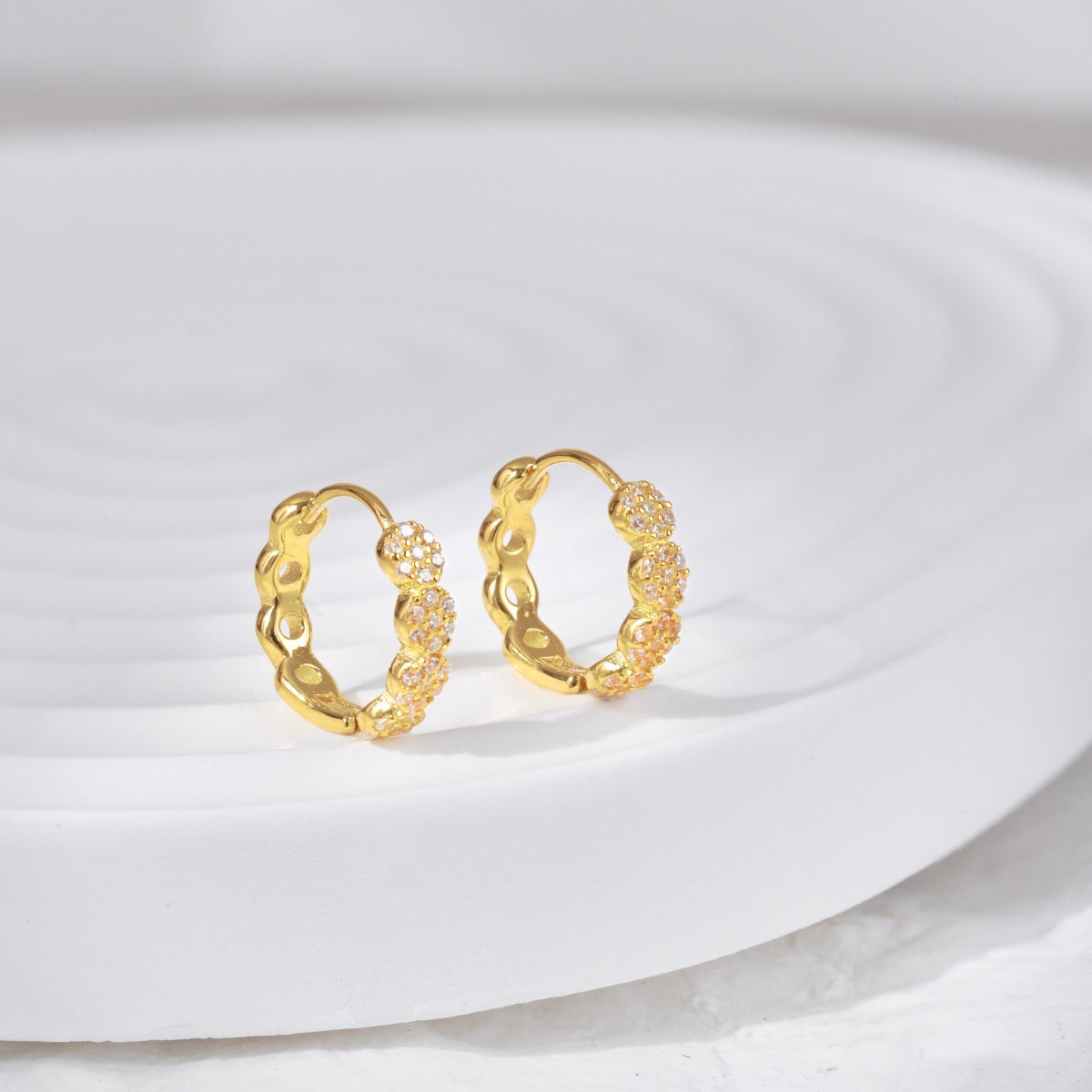 Huggies en plata de ley 925, chapado en oro 18k y zirconias, hipoalergénico.