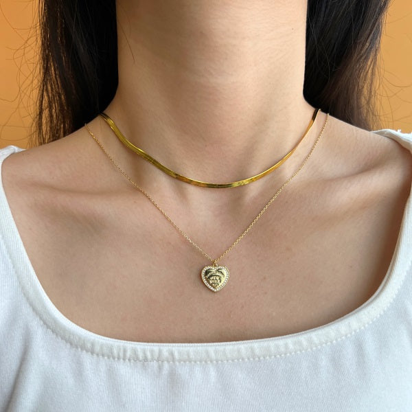 Cadena en forma de corazón Plata s925, chapada en oro 18k. Hipoalergénica.