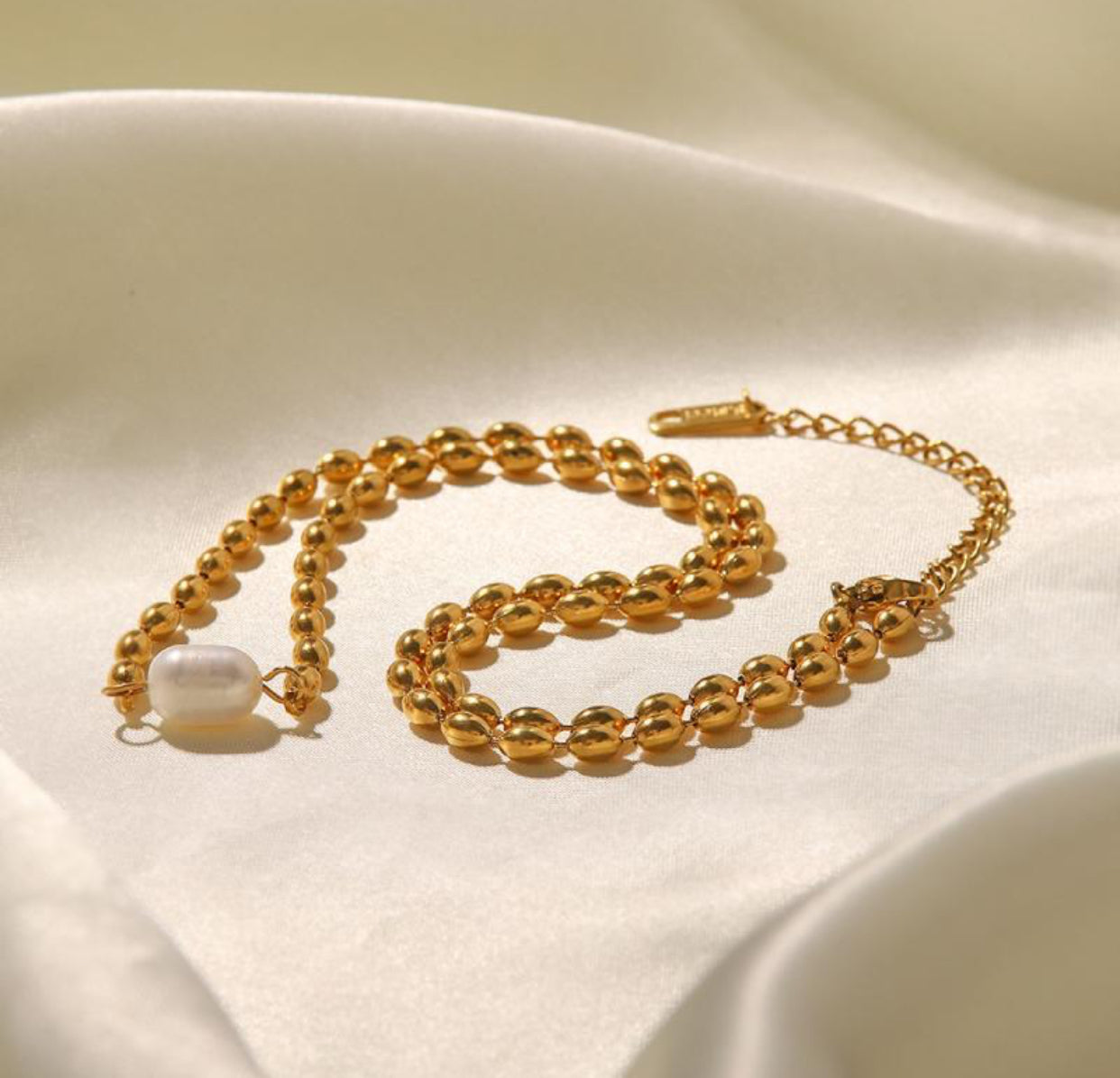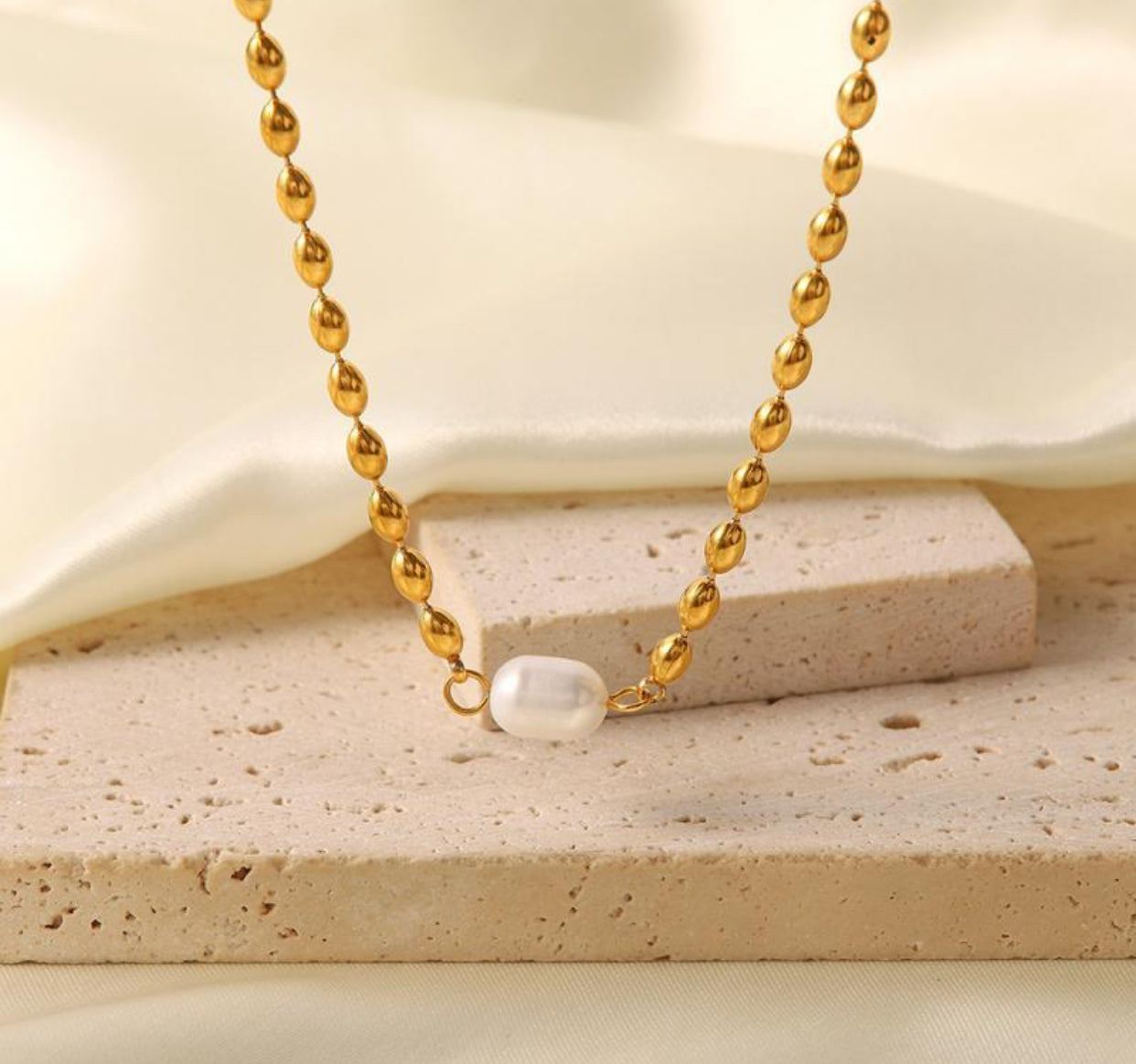 Este delicado collar combina la elegancia de una perla sintética con la durabilidad del acero inoxidable 316L. Las cuentas cuidadosamente colocadas realzan su diseño, creando un equilibrio perfecto entre sofisticación y modernidad.