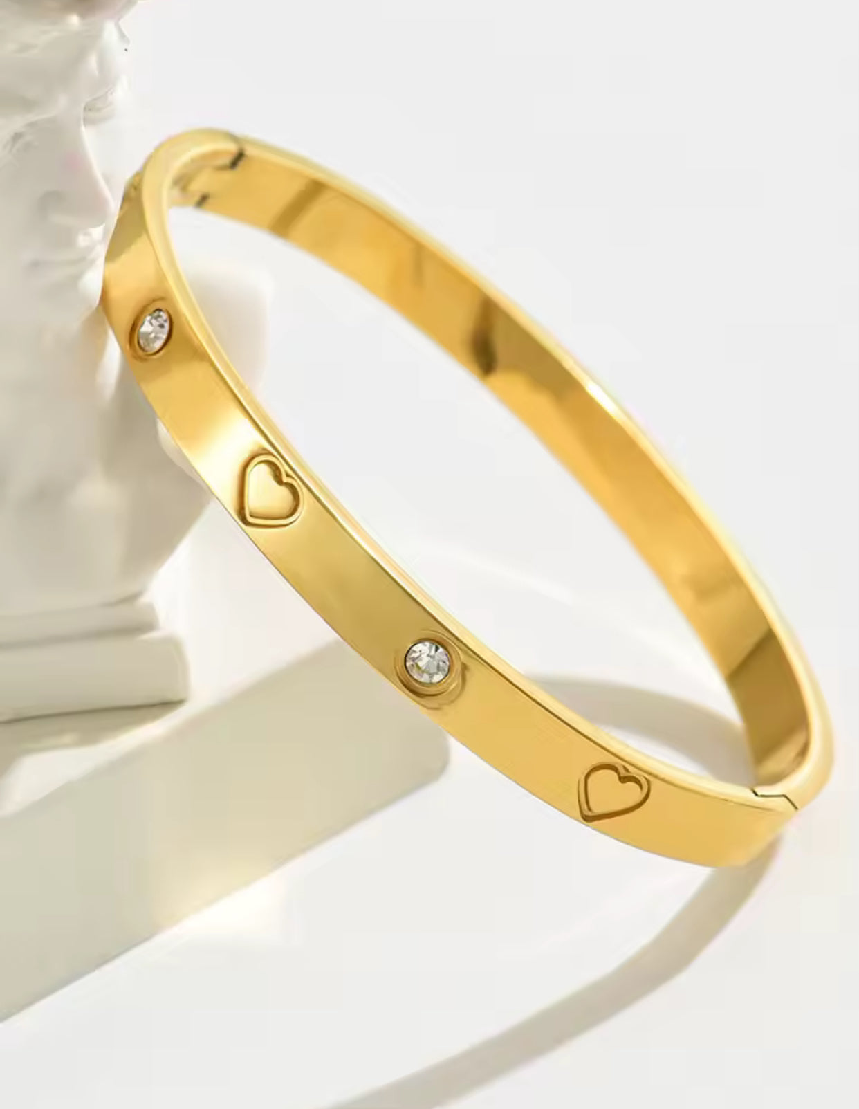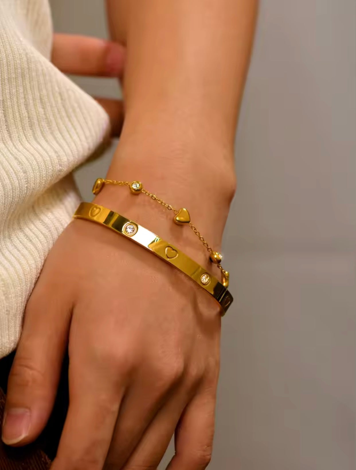 Brazalete Heart – Un símbolo de amor puro y eterno, diseñado para quienes aprecian la belleza en los pequeños detalles. Fabricado en acero inoxidable 316L de alta calidad, este brazalete es hipoalergénico, resistente al agua y al desgaste, asegurando una durabilidad excepcional sin perder su brillo. Su diseño minimalista y elegante lo hace ideal para cualquier ocasión, ya sea para el día a día o para complementar un look sofisticado. Su forma delicada y ajuste cómodo permiten llevarlo solo como una pieza sutil o combinarlo con otras joyas para un estilo más audaz. Perfecto como un regalo significativo o como un recordatorio de amor propio, el brazalete Love es más que un accesorio: es una declaración de sentimientos que trascienden el tiempo.
