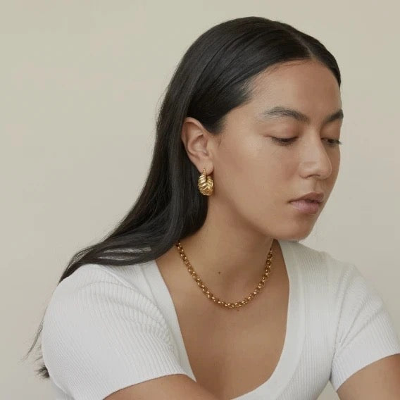 "Refleja tu estilo con nuestros hoops en acero inoxidable 316L, recubiertos con un baño de oro 18 para un brillo duradero. Un toque de elegancia contemporánea que complementa cualquier look con sofisticación y clase.