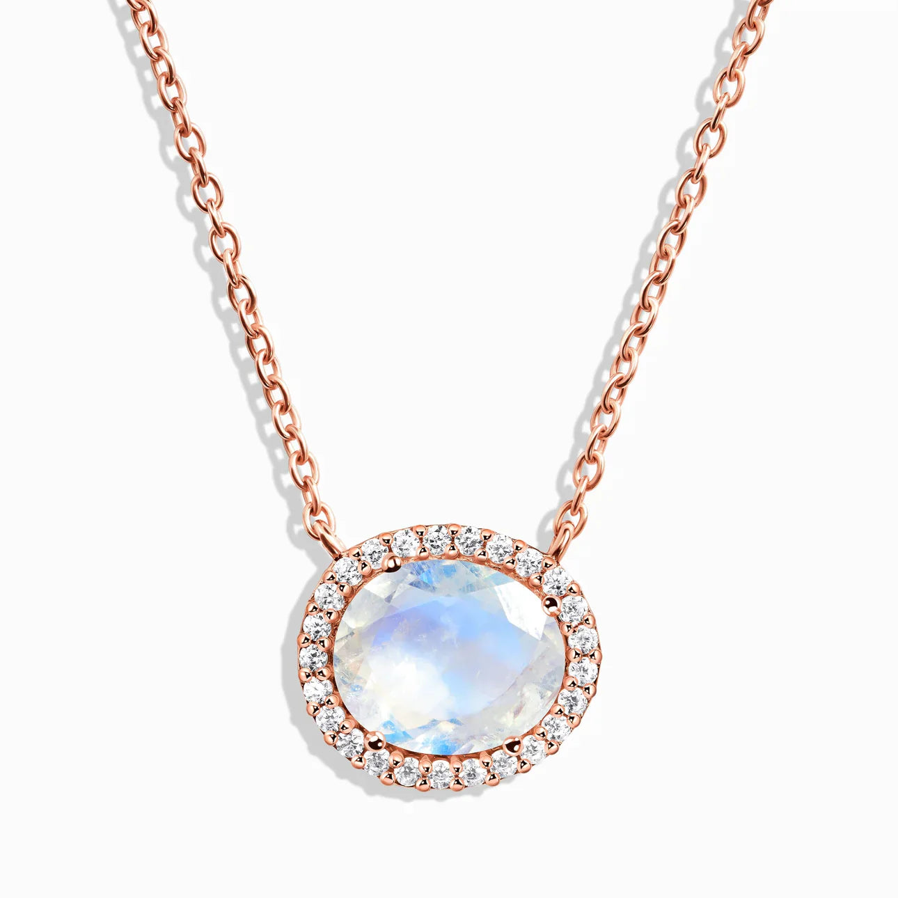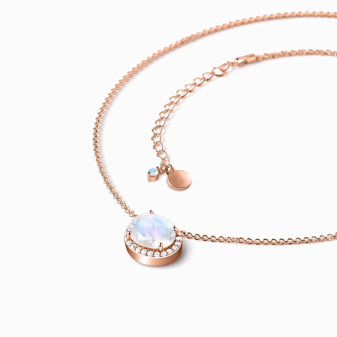 Collar de Piedra Lunar Arcoíris Natural y Baño en Oro Rosa 18K – Diseño Ovalado