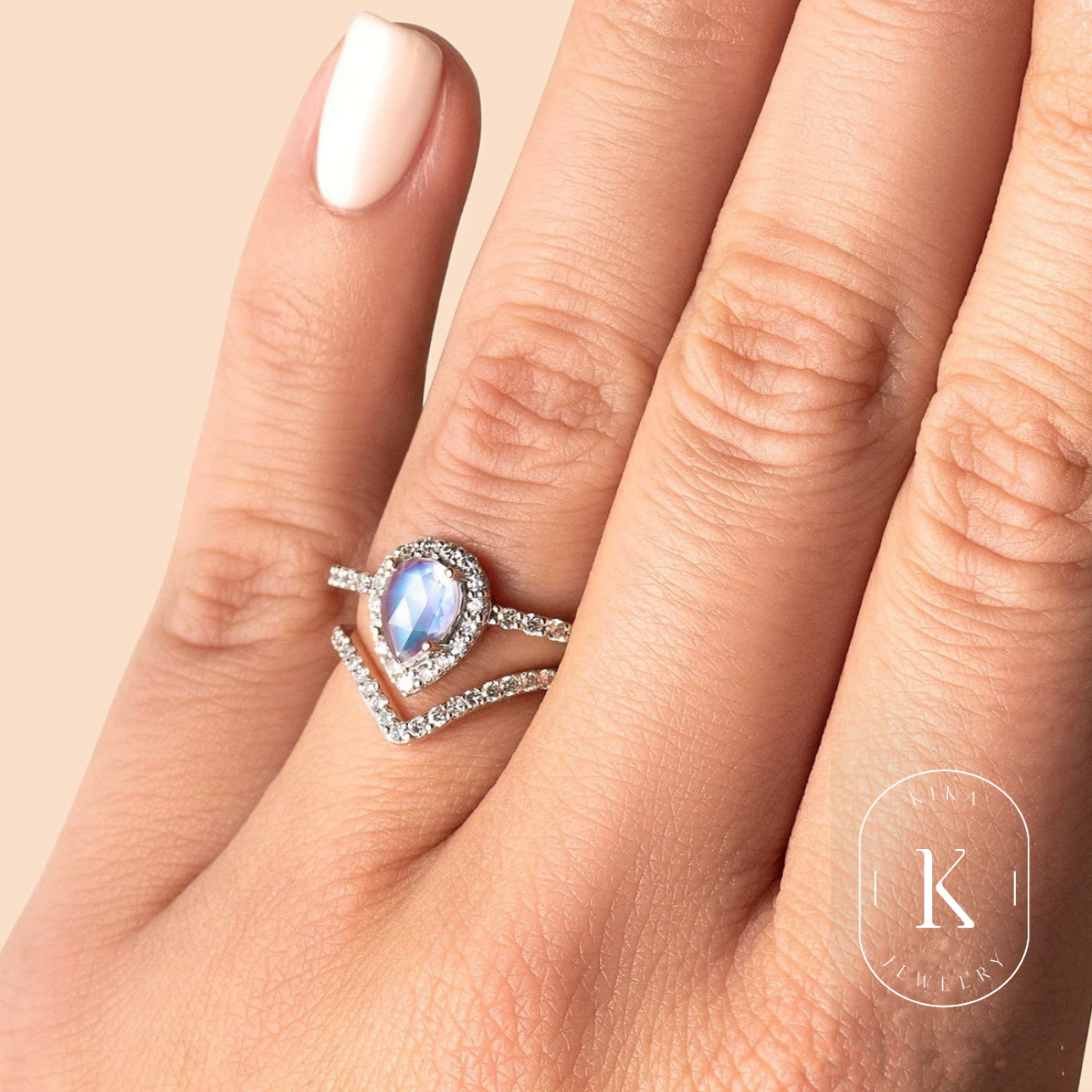 Disfruta de tu buena suerte con Blue, un anillo de piedra lunar y Zircon que celebra la buena suerte. Pensado para proteger a los viajeros, este anillo de piedra lunar toma su nombre de la diosa romana para la suerte.