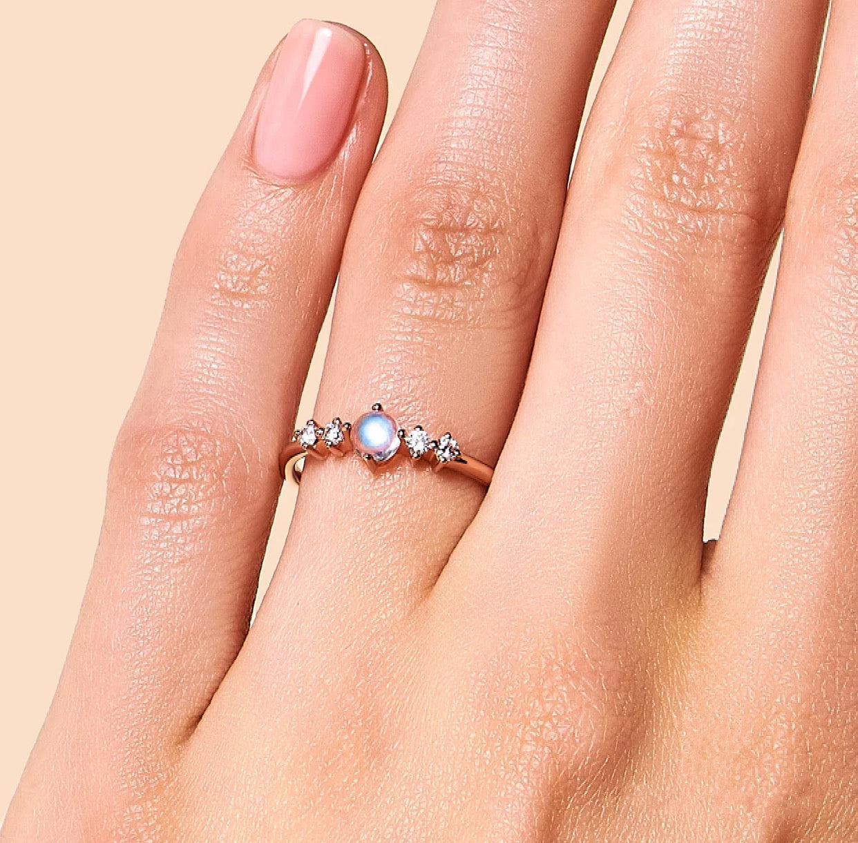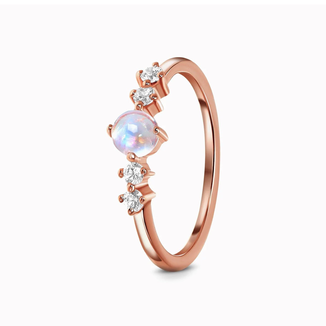 Canaliza esa energía femenina sutil pero dominante con este pequeño y bonito anillo, nuestro auténtico anillo de Piedra Luna - La belleza lo mantiene femenino y versátil para cualquiera de las aventuras de la vida. Esta belleza multidimensional es abrazada con amor por cuatro auténticos Zircon blancos.