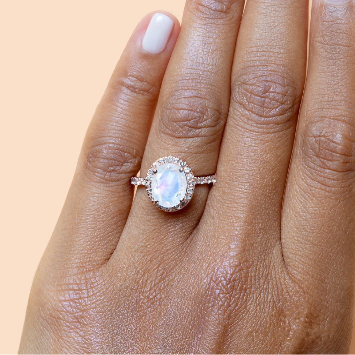 Conoce nuestra nueva pieza de súper declaración. Inspirado en nuestro Thiago favorito de todos los tiempos, nuestro anillo de piedra lunar Queen KIKA es nuestro anillo de piedras preciosas más grande hasta la fecha y seguramente se convertirá en tu nuevo elemento básico de atuendo. Adornado en el centro con una auténtica piedra lunar ovalada engastada en puntas florales y rodeado de pequeñas gemas brillantes de topacio blanco, este anillo seguramente llamará la atención.