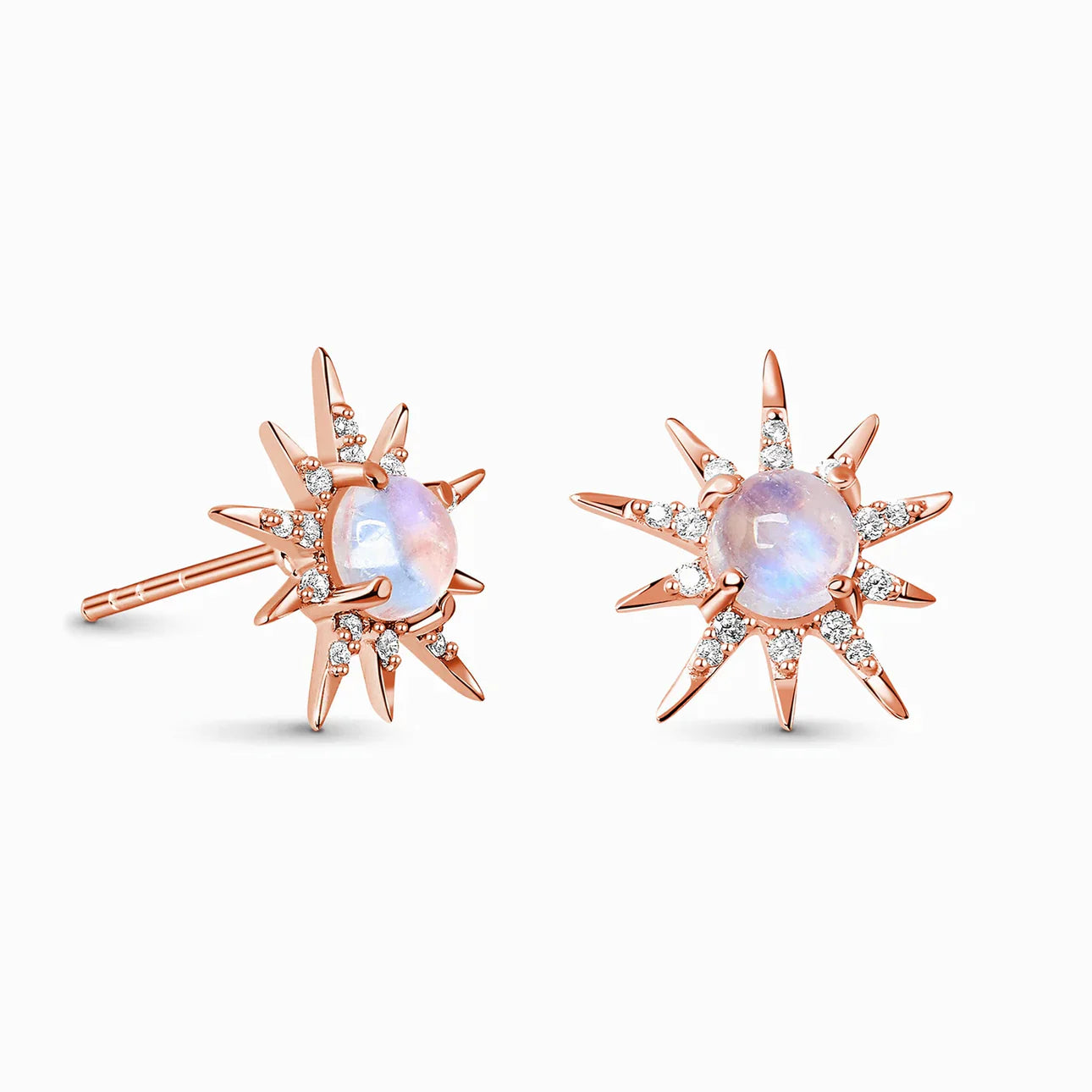 Mantén tu estilo chic, colorido y siempre a la moda con los deslumbrantes star. Estos delicados aretes combinan piedra lunar auténtica con el brillo sutil del circon blanco, creando una pieza luminosa y encantadora que realza tu look con suavidad y elegancia.