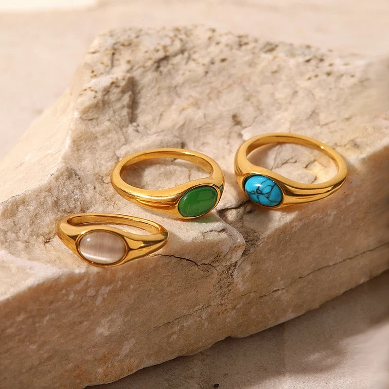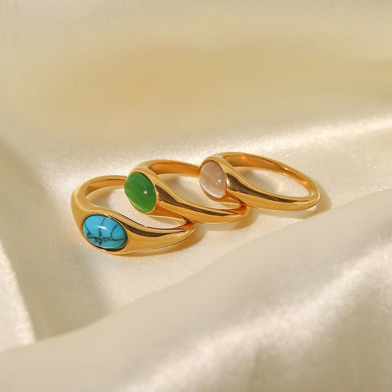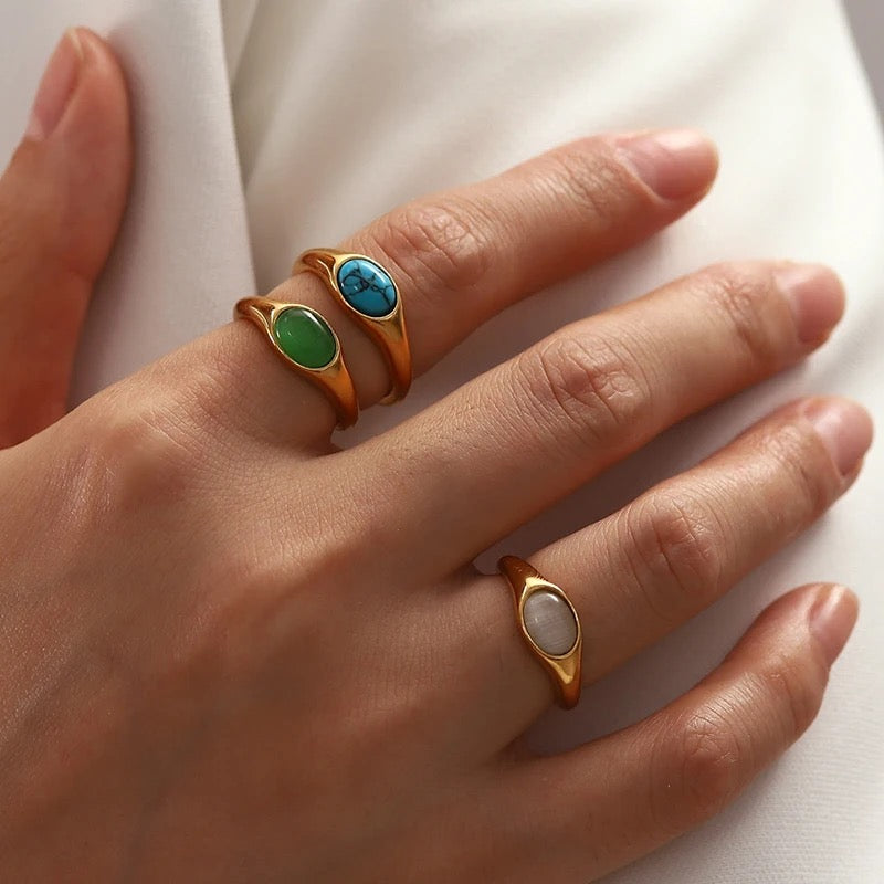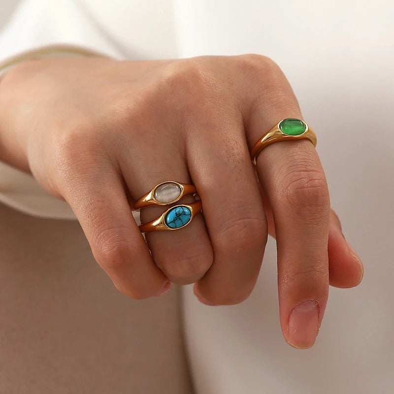 Deslumbra con nuestro anillo de acero inoxidable 316L, sumergido en el lujo del oro 18. Una declaración de estilo duradera, diseñada para brillar en cualquier ocasión.