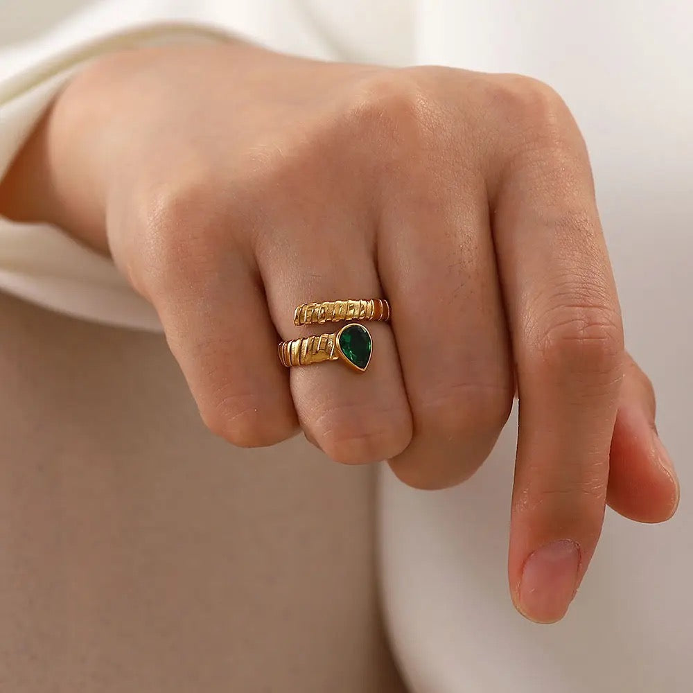 Deslumbra con nuestro anillo de acero inoxidable 316L, sumergido en el lujo del oro 18. Una declaración de estilo duradera, diseñada para brillar en cualquier ocasión.