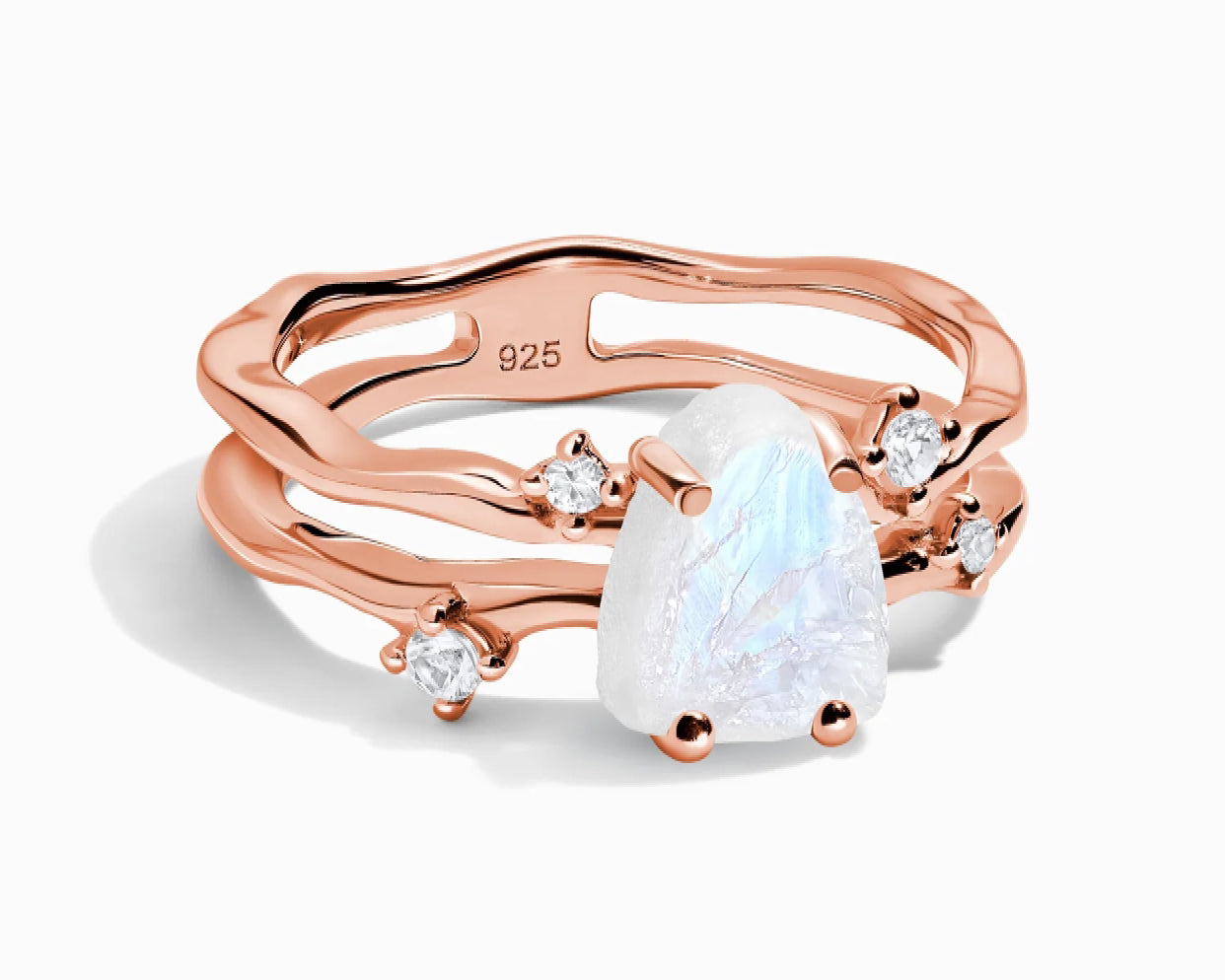 Navigate new adventures confidently with our Raw Crystal Ring - Flow, adorned with enchanting Moonstone. Known as the Stone of Intuition, Moonstone supports inner balance and emotional healing, making it the perfect companion for your journeys ahead.