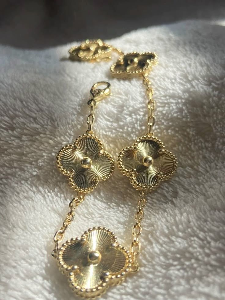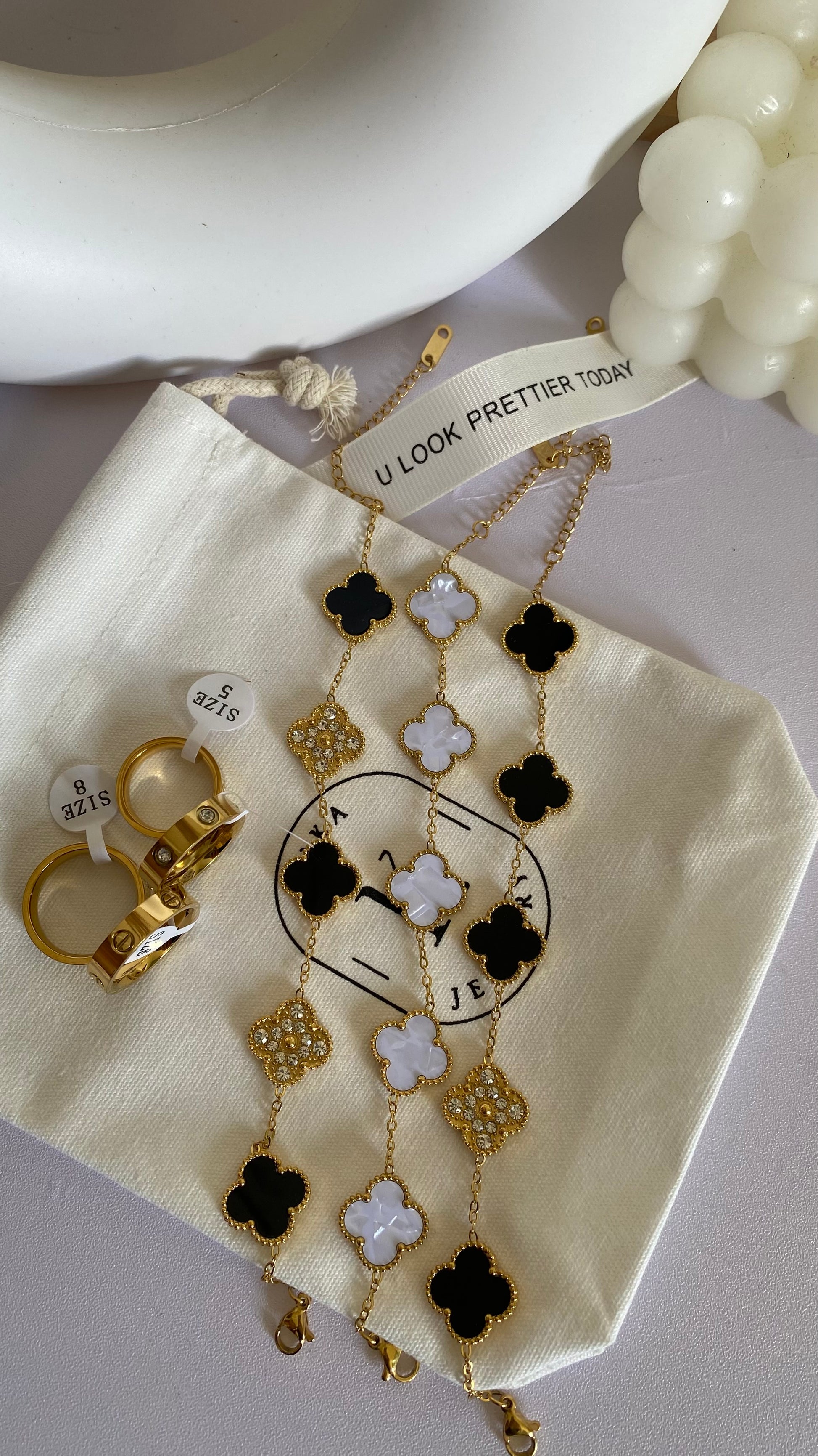 Este brazalete de trébol es la elección perfecta para quienes buscan un accesorio clásico con un toque moderno. Su diseño versátil y elegante lo hace ideal para usar solo o combinarlo con otros brazaletes para un look de capas. Ya sea para un evento especial o para el uso diario, este brazalete es un imprescindible en tu colección de joyería.