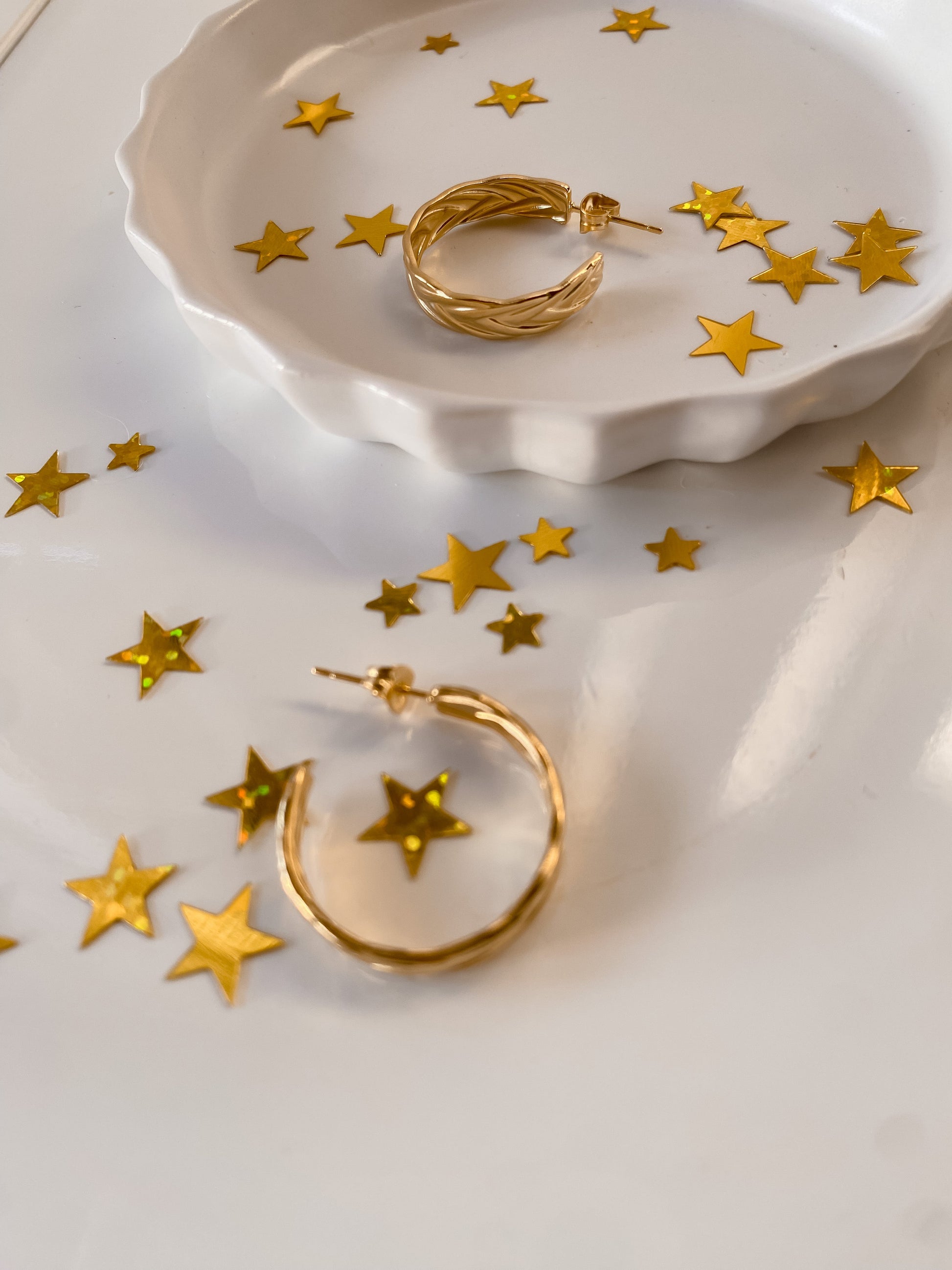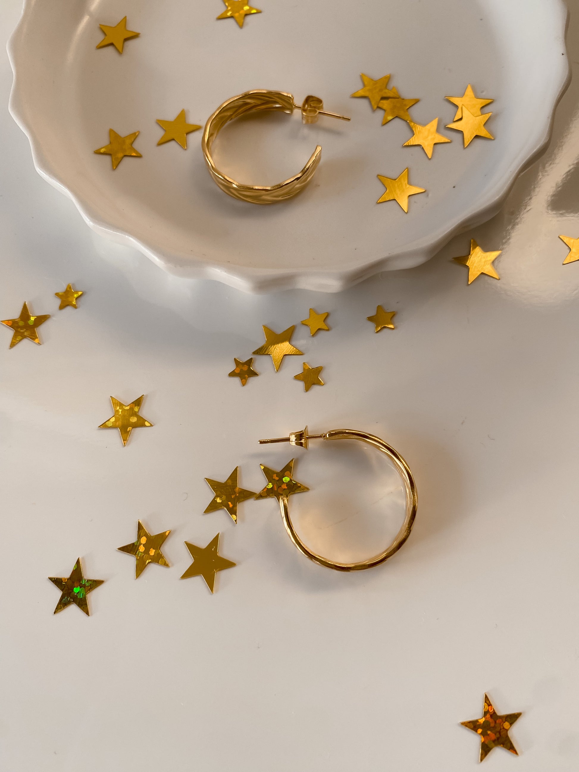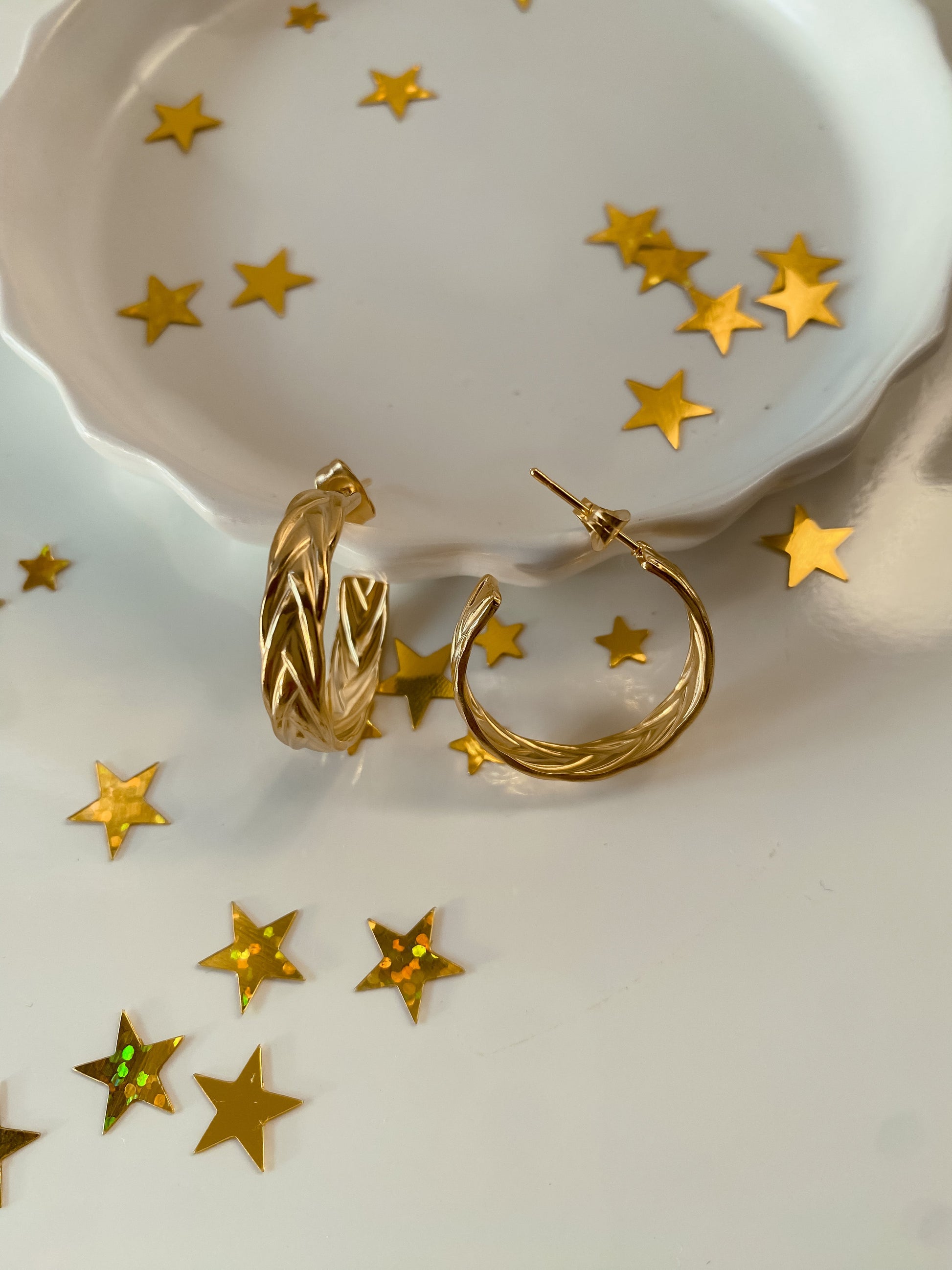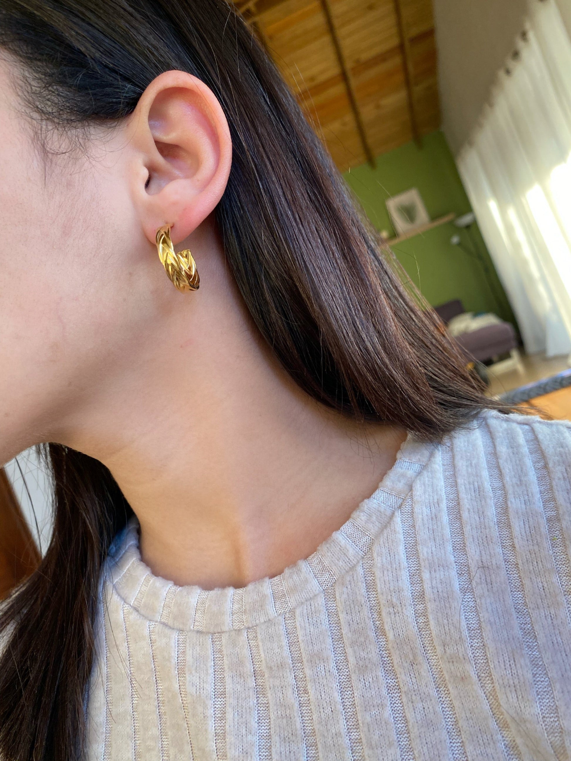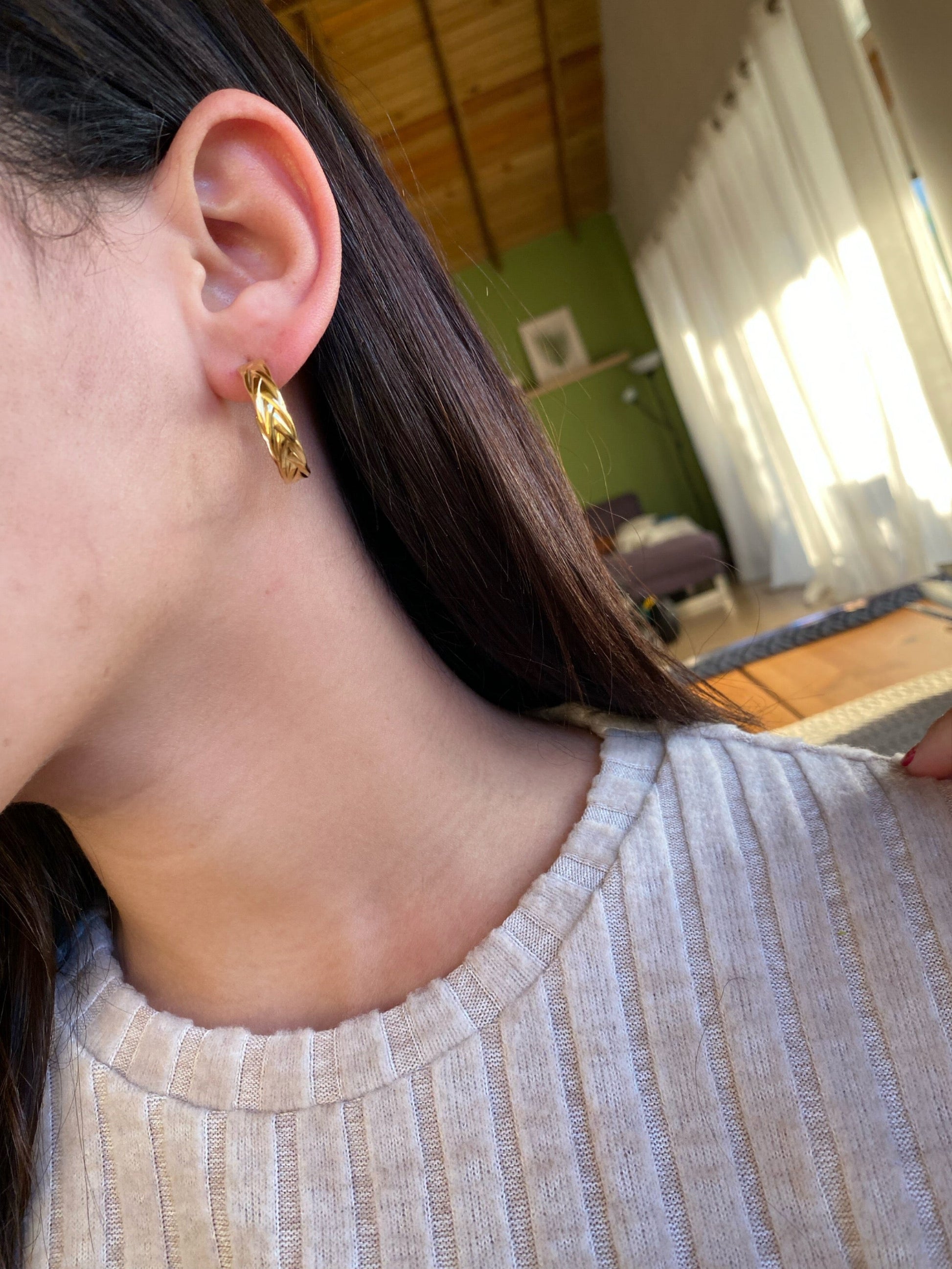 Aros en acero inoxidable 316l, revestido en oro 18k, hipoalergénicos y resistentes al agua.